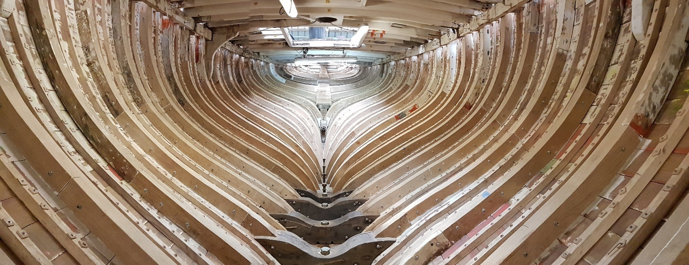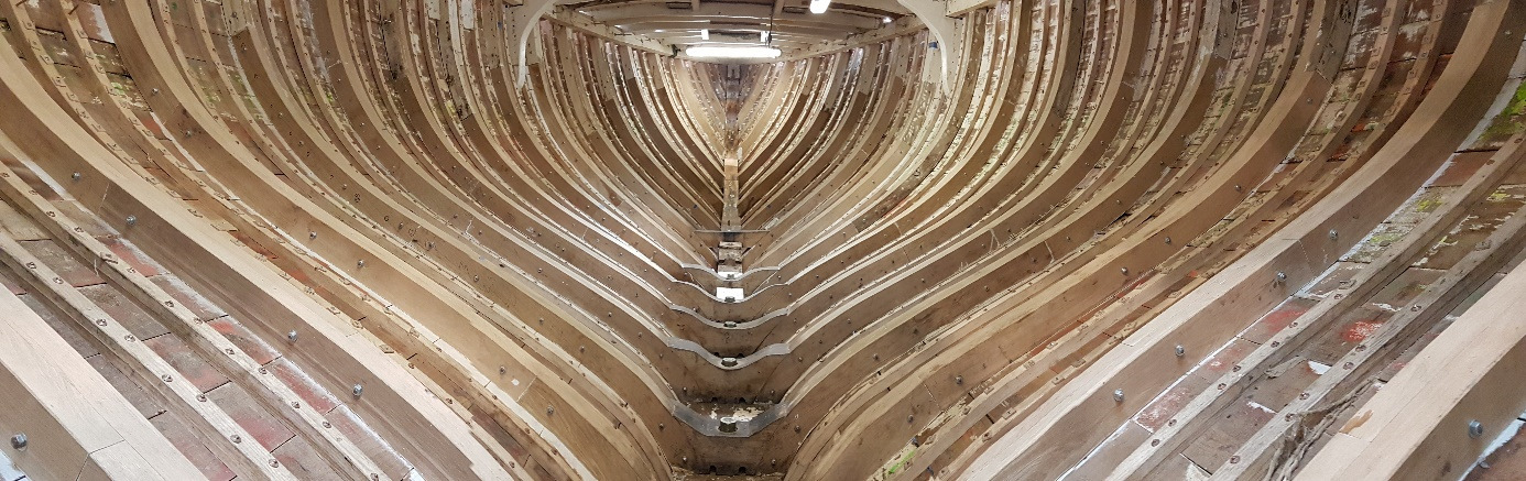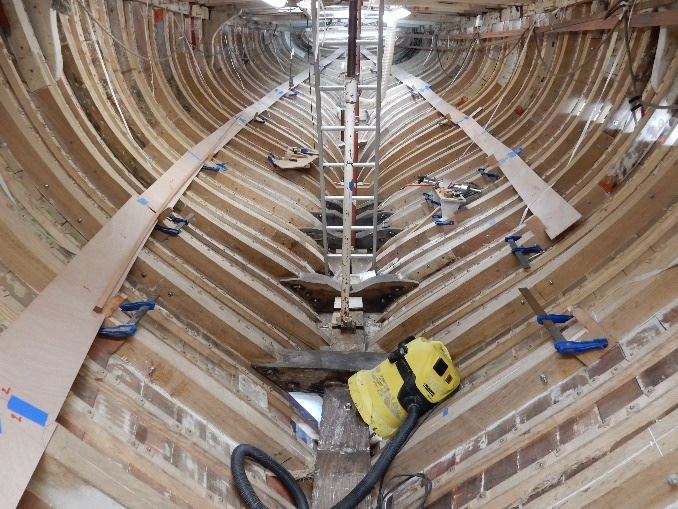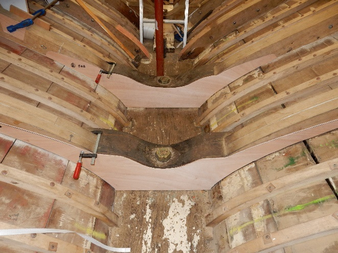 steam bent and grown frame repairs, looking aft – early October 2016