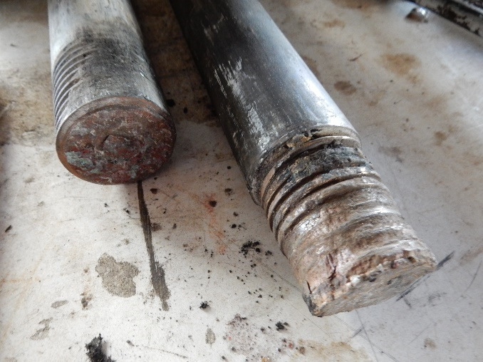 Threads on two removed keel bolts early October