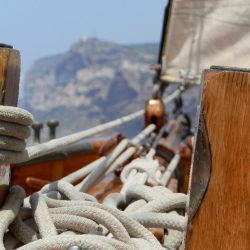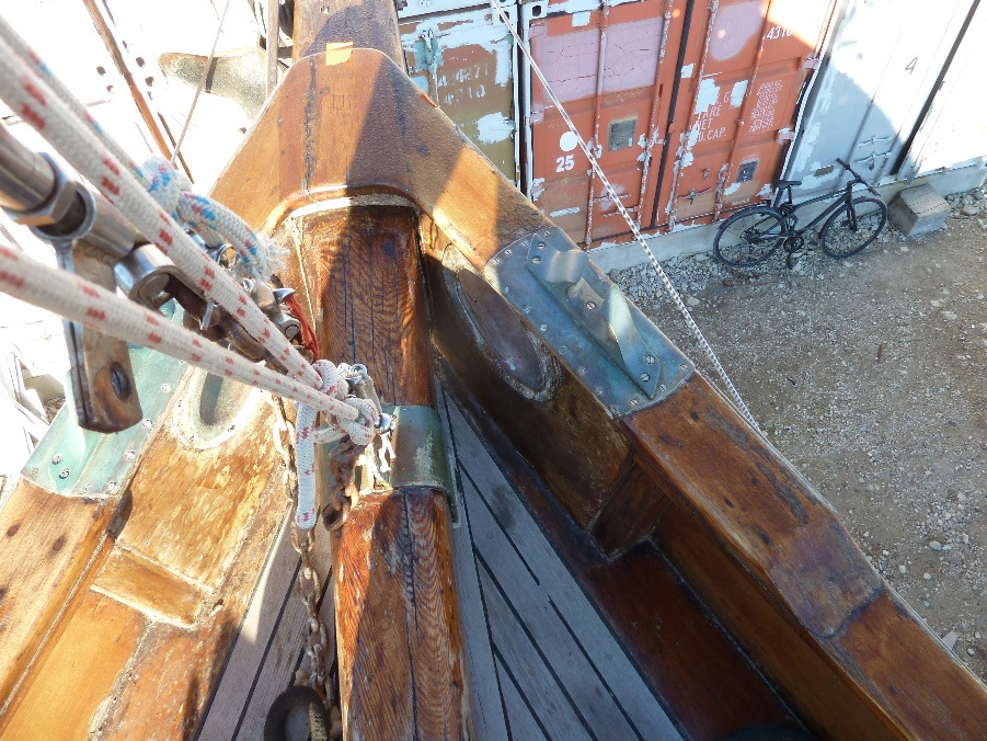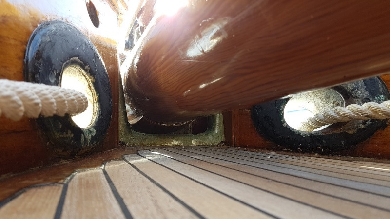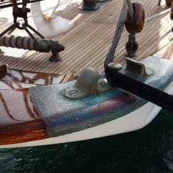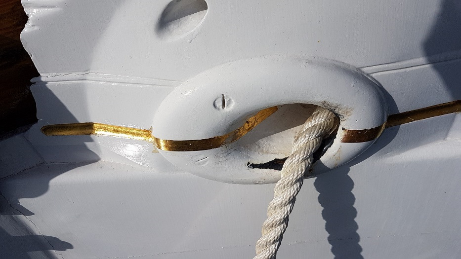 anchor cathead fittings on the bulwark rail