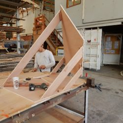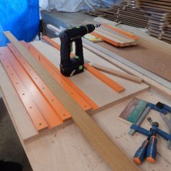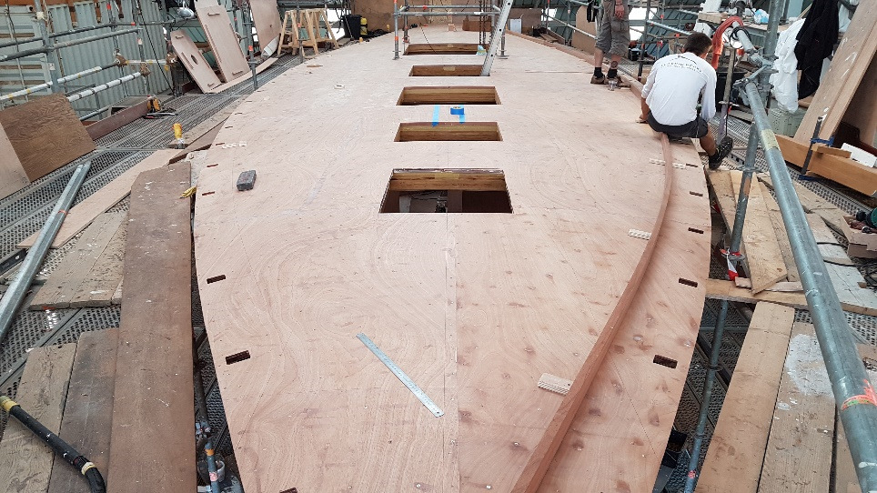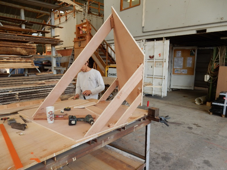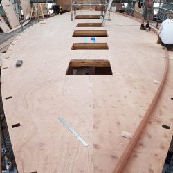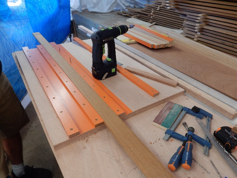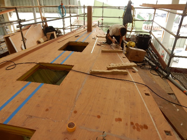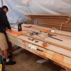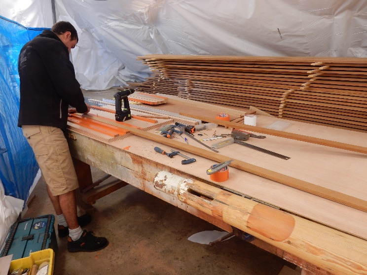 Inner edge of teak covering boards being marked onto the 2 plywood layers