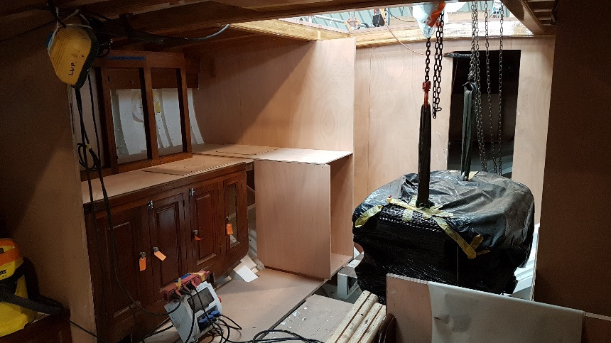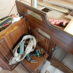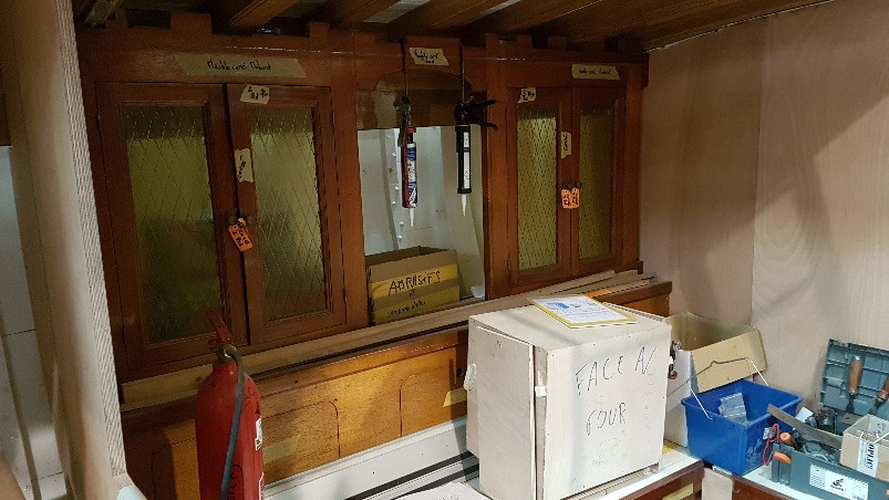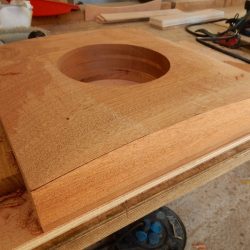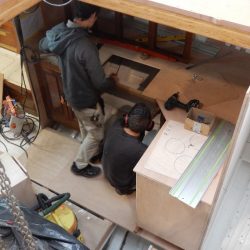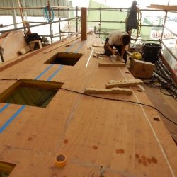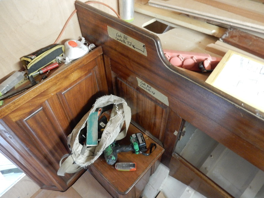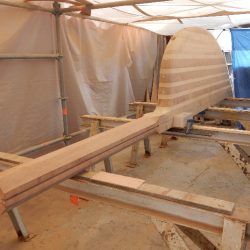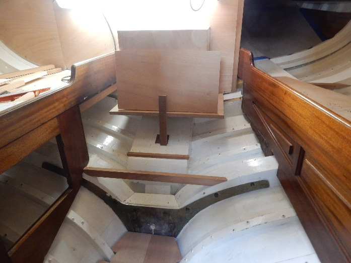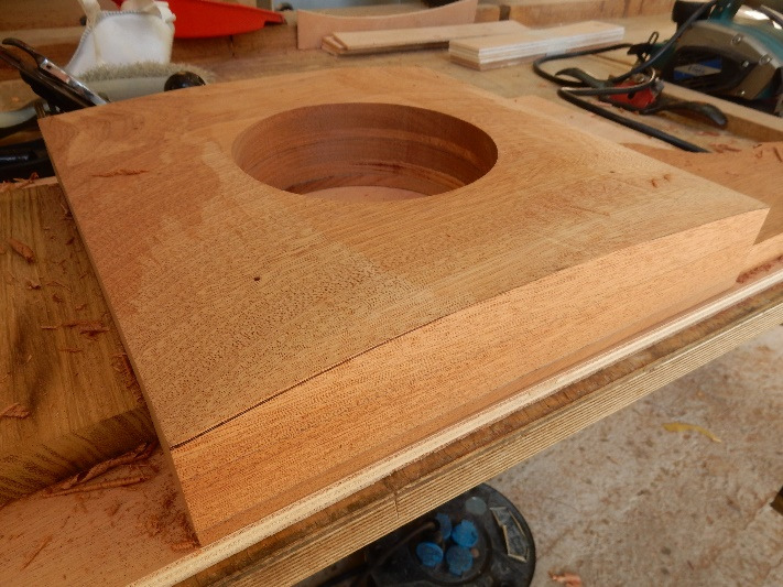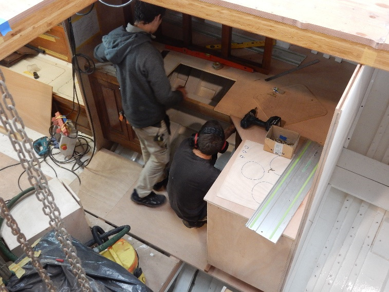 Sipo infill at porthole being rounded on outboard face to fit against hull