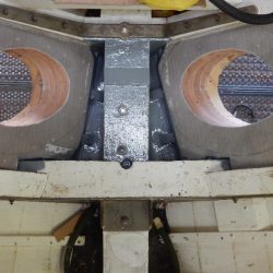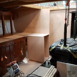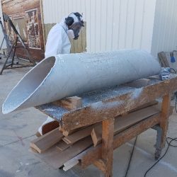 Bow-thruster hull re-inforcing – plywood with epoxy resin fibre-glass laminates