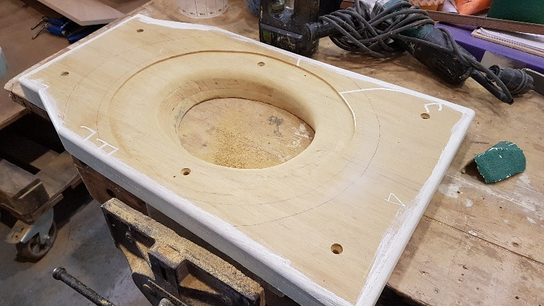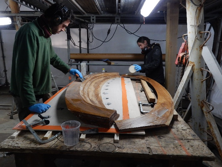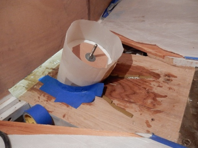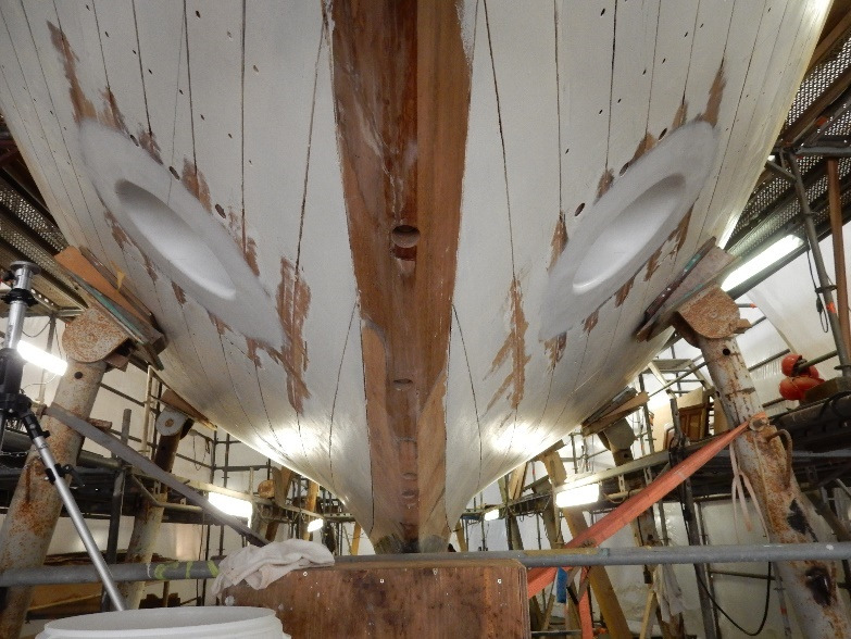 Moulding the inside of the lower part of the rudder tube/trunk prior to tube installation