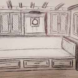 Cabinet makers work-in-progress sketch of main saloon starboard side.