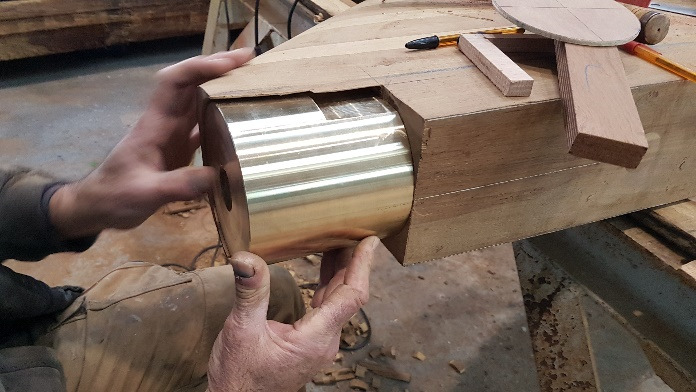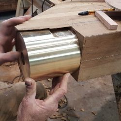 Bronze lower rudder bearing being fitted prior to assembly and welding