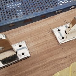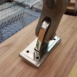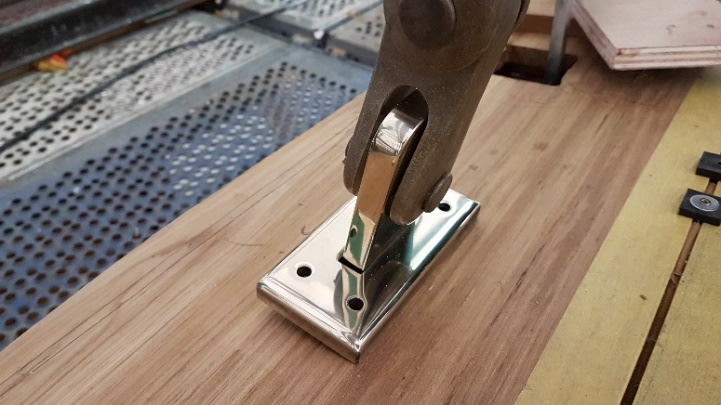 Bronze chain-plate and deck plate with rigging screw toggle – prior to letting plate into teak