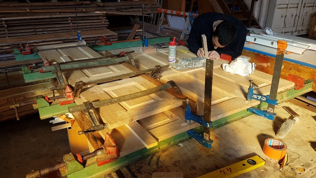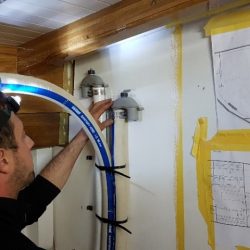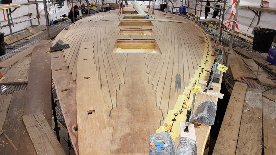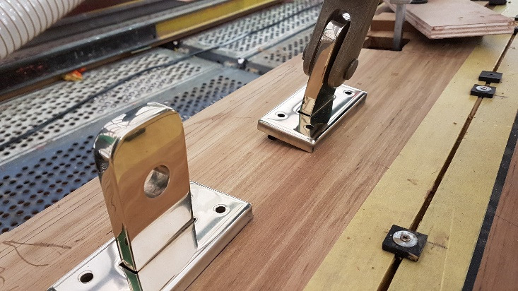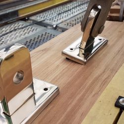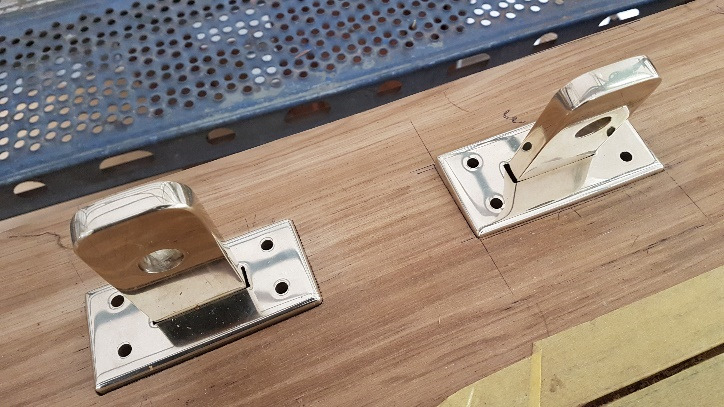 Bronze chain-plates and deck plates with rigging screw toggle – prior to letting plates into teak