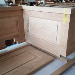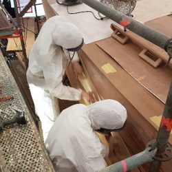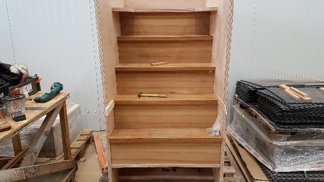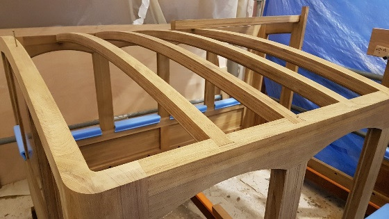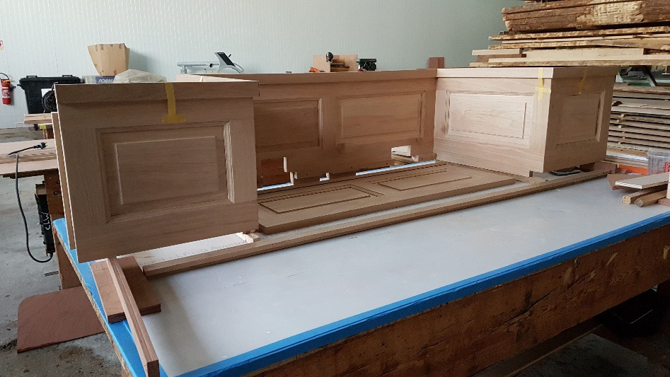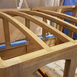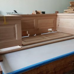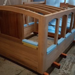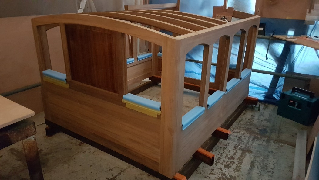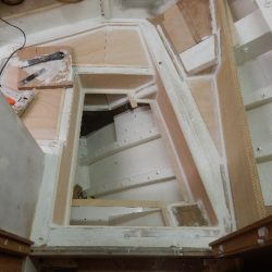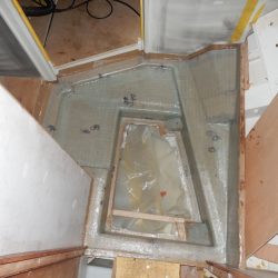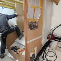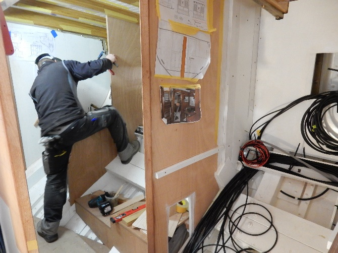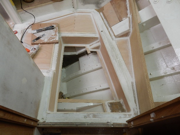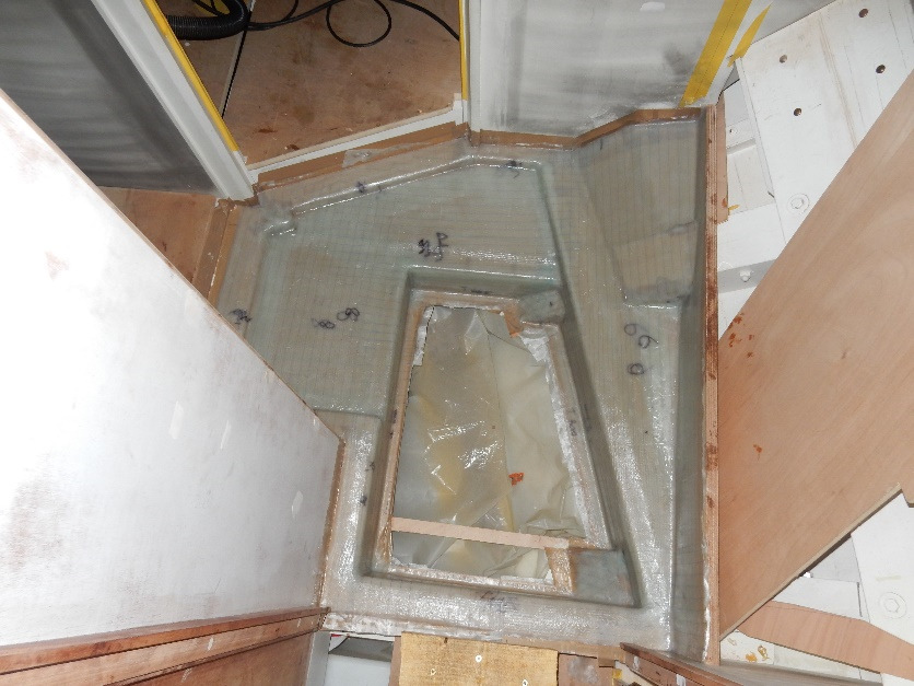 Fabrication of GRP shower tray in owners’ cabin using the hull and sole beams as the mould.
