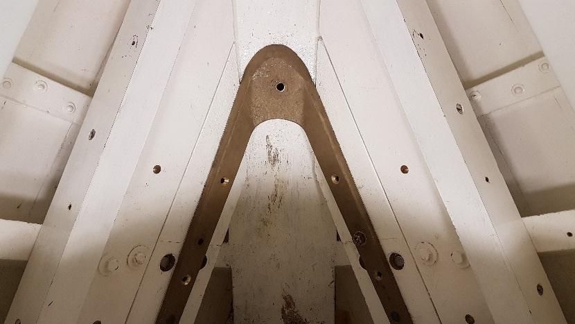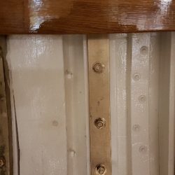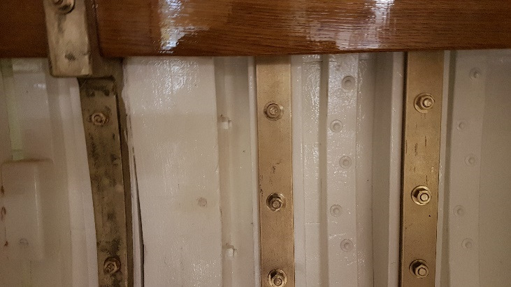 Two 12mm bronze chain-plates to the right of one cast bronze hanging knee