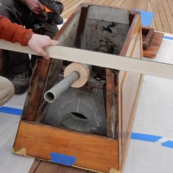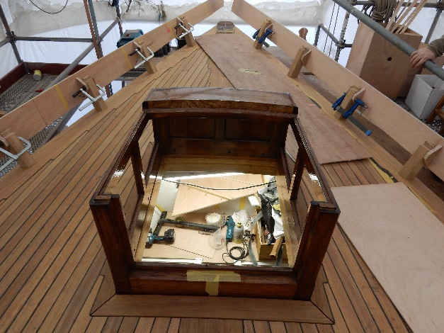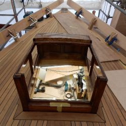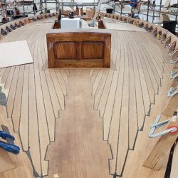 Prior to the restoration, the plan view of the deckhad a number of humps and hollows down the length of the yacht’s topsides. This unfairness could not be rectified during re-framing because the hull planking was used as the former for the new frames and the deformations were not large enough to justify removal of large areas of hull planking at the same time.