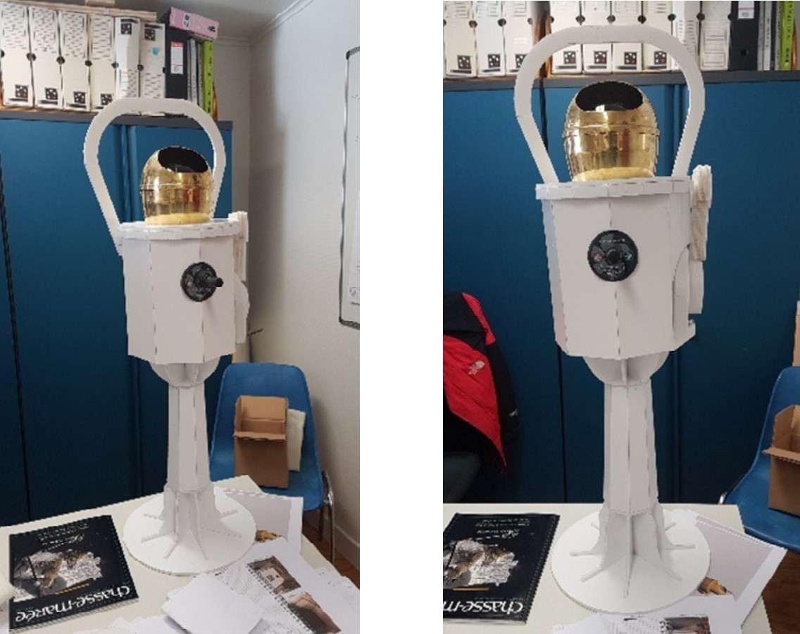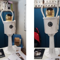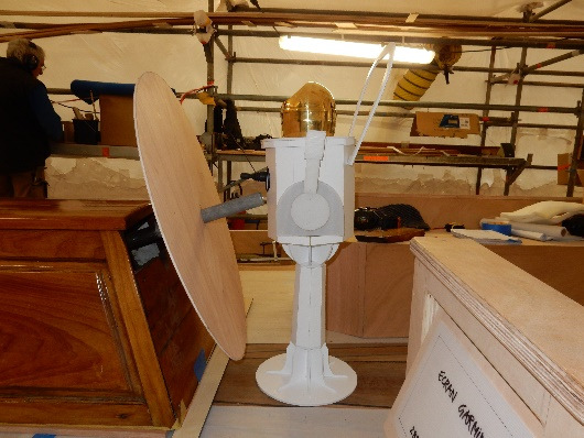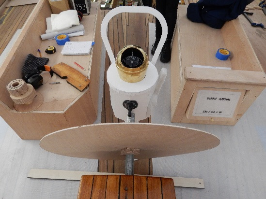 Cardboard model of compass binnacle with engine and bow-thruster controls