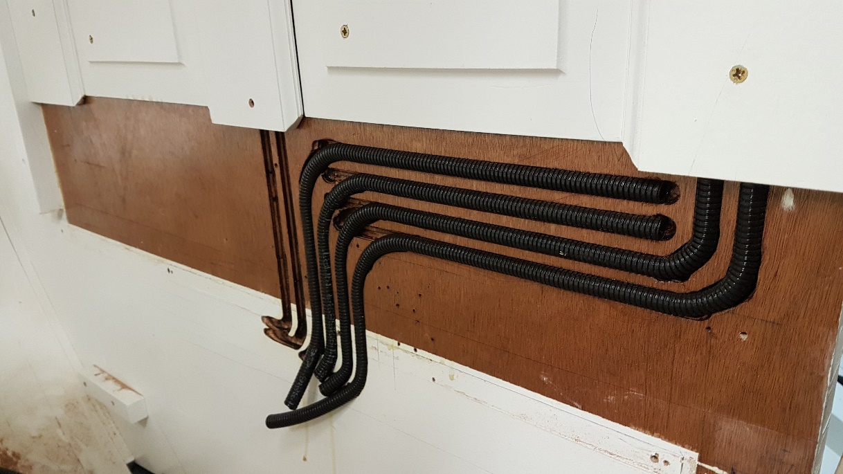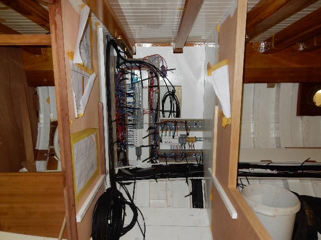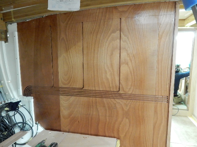 Routered grooves for the cabling ducts in main saloon bulkhead