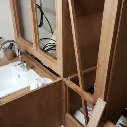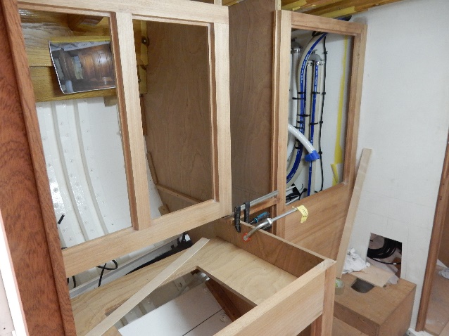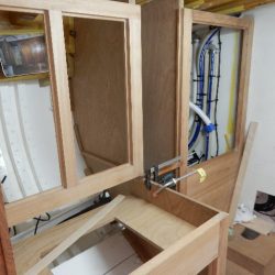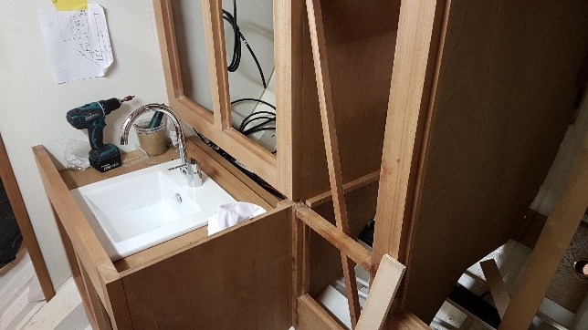 Aft cabin heads joinery with sink temporarily placed for checks