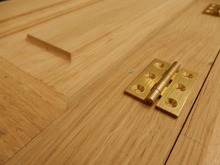 Oak interior joinery panel and brass hinges