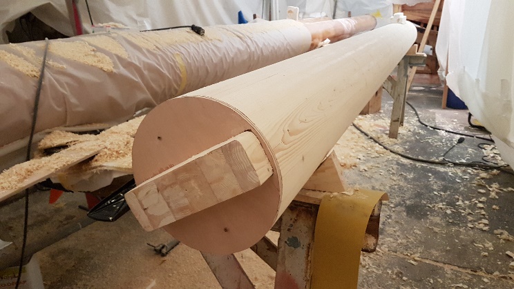 Mock-up of main mast and heel tenon prior to installation checks