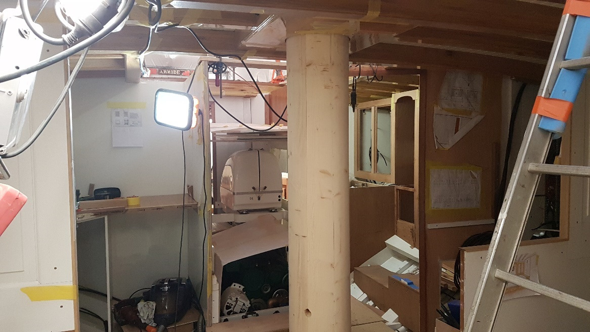 Mainmast model in place looking aft with owners cabin aft port bulkhead
