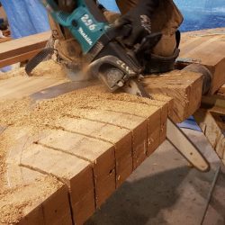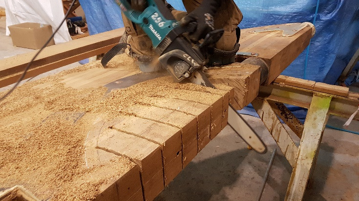 Routering the caulking groove at an oak bulwark stanchion