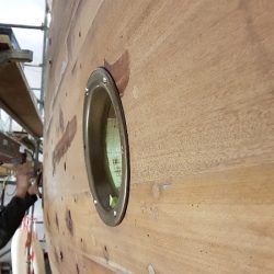 Porthole showing amount to be adjusted top and bottom depending on position along the hull