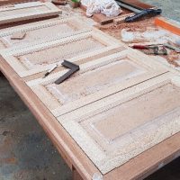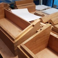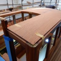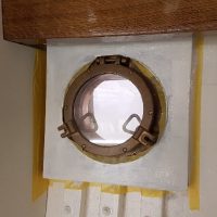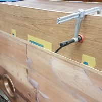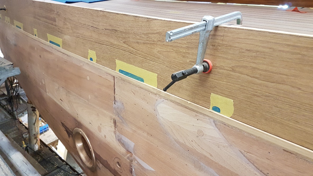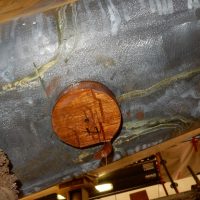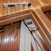 Iroko plug epoxied into underside of lead keel to plug keel bolt hole.