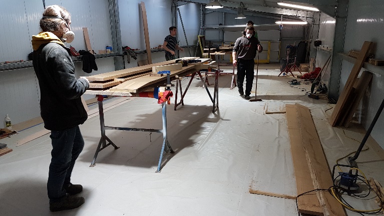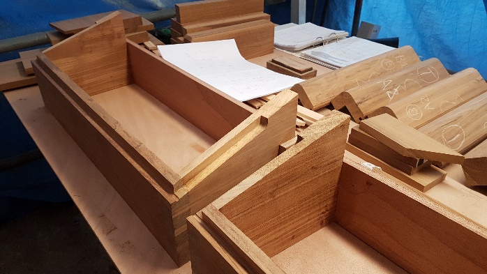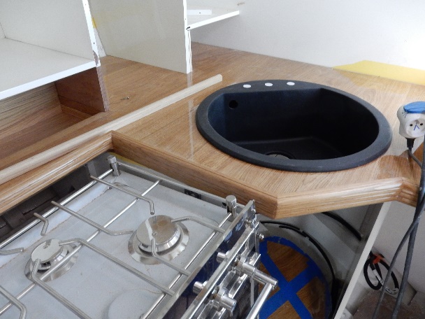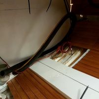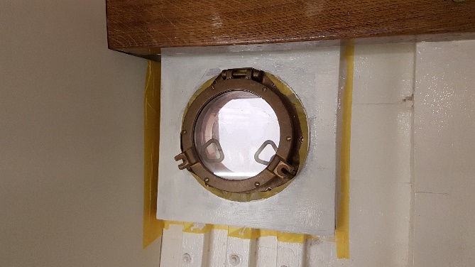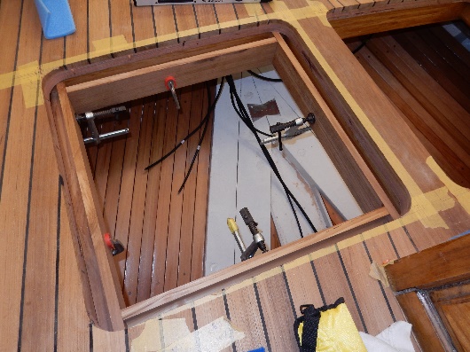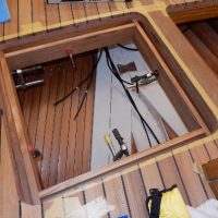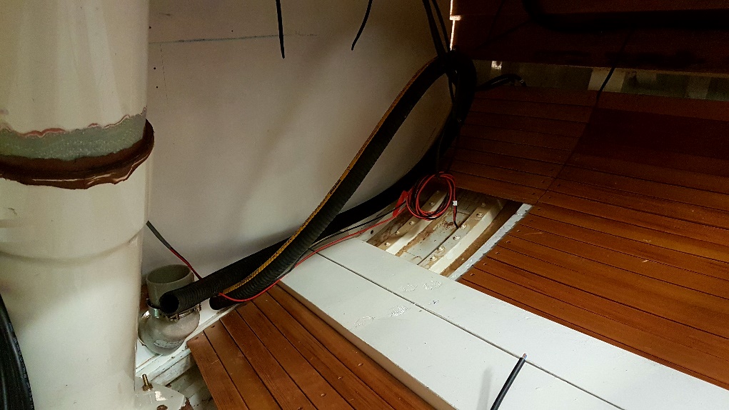 Opening in lazarette panelling to make way for exhaust skin fittings (main & generator).
