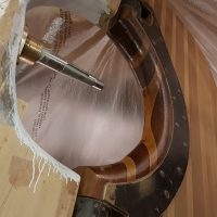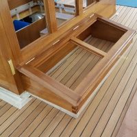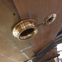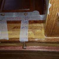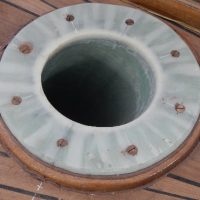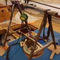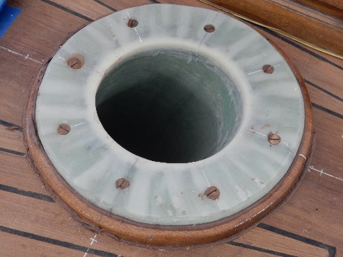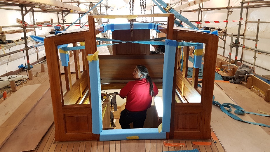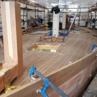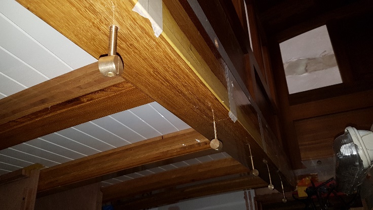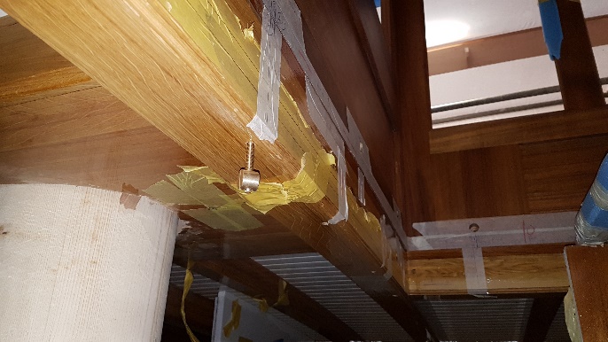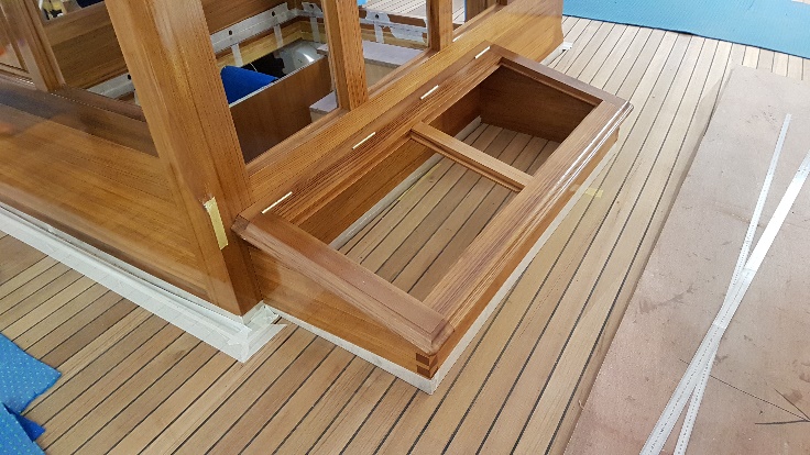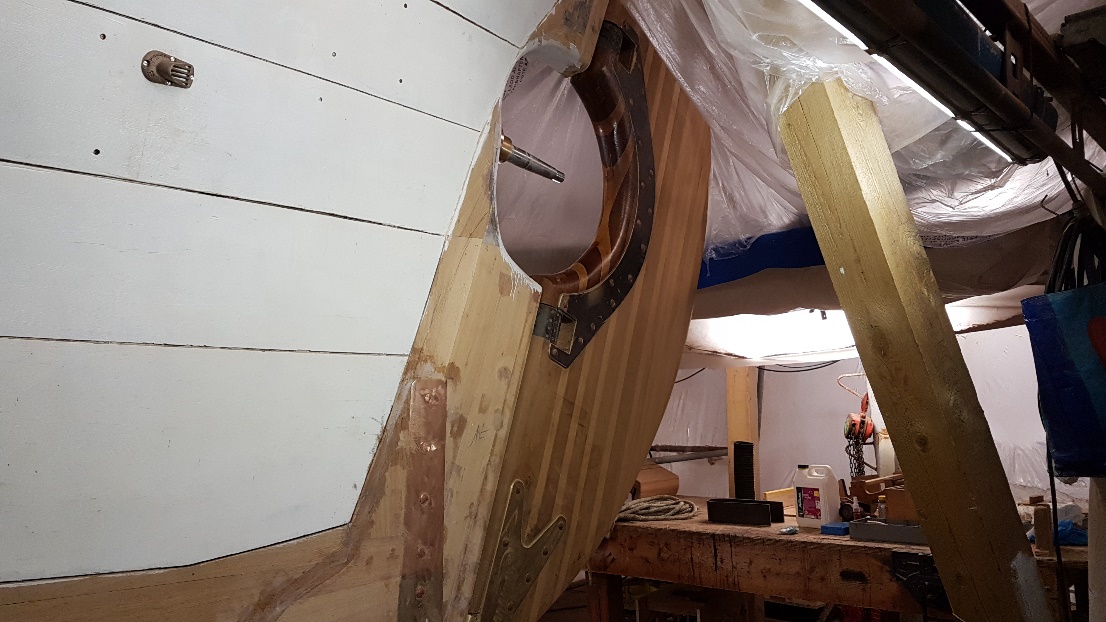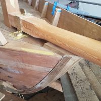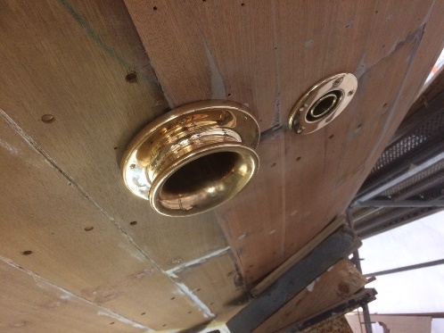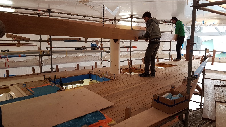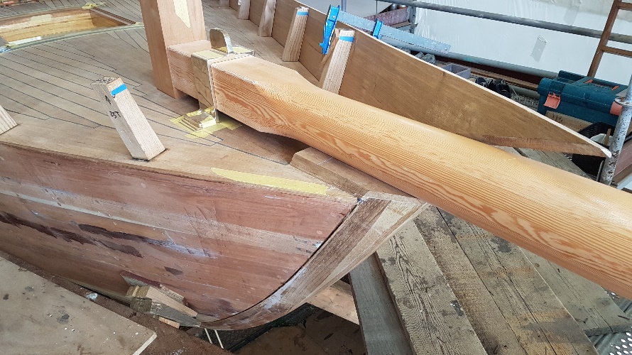 Port bulwark rail forward section in place for marking scuppers and bow angles