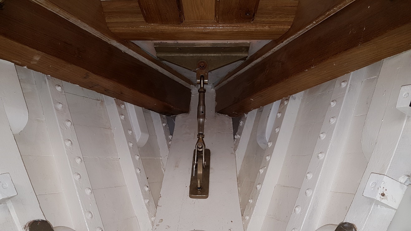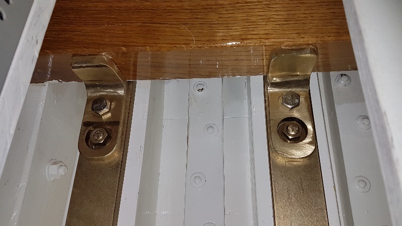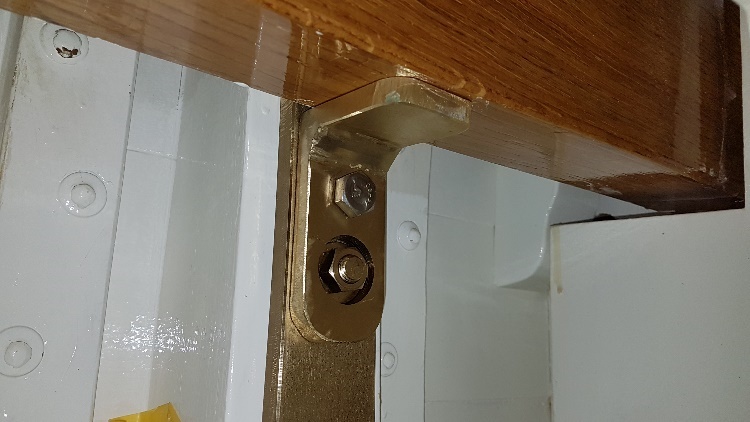 Fabricated under-shelf brackets on chain-plates at the chart table