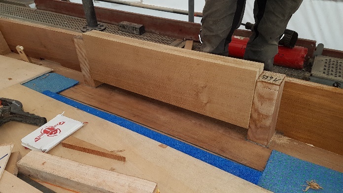 Reinforcing of the bulwarks in way of the midship fairlead (starboard side).