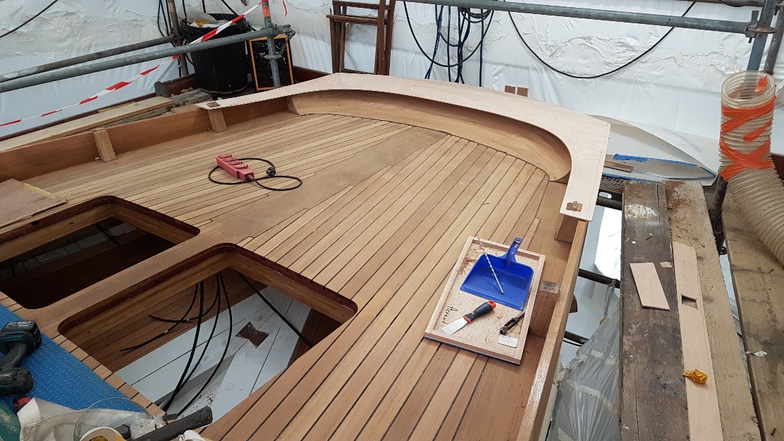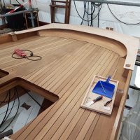 Teak deck bench for cockpit area
