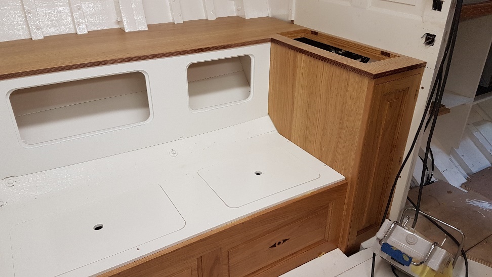 Dry fitting of furniture on forward interior face of doghouse