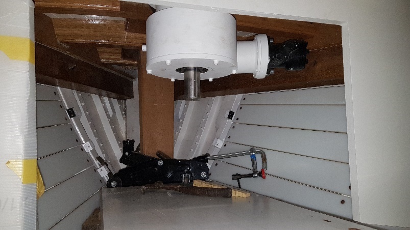 Fabricated under-shelf bracket on chain-plate at the chart table