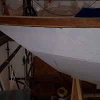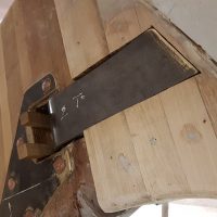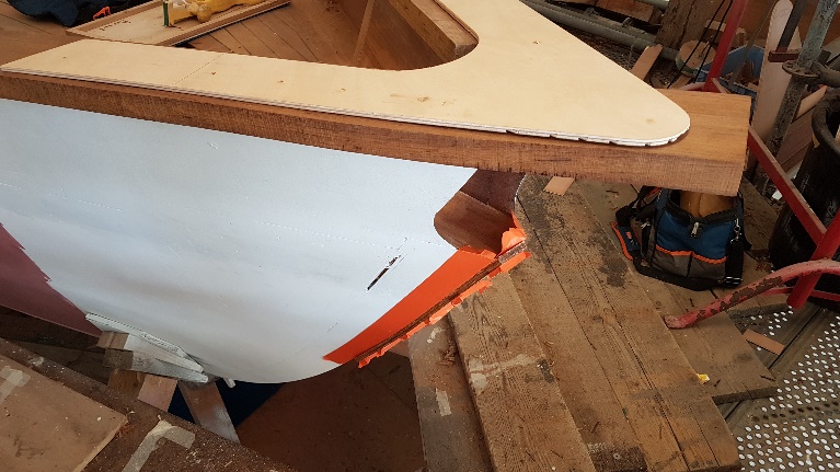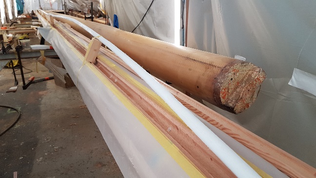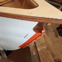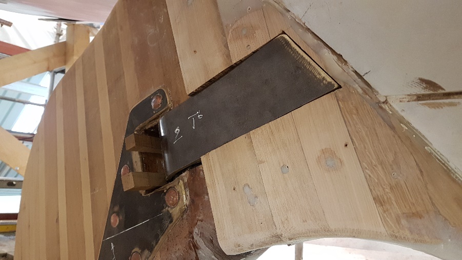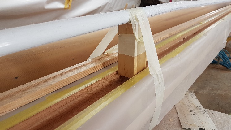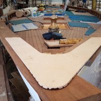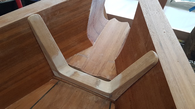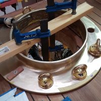 Making the foundry pattern on the stem for the gammon iron support (laminated on orange tape).