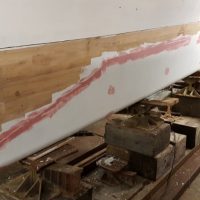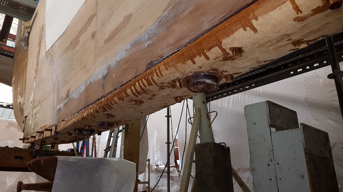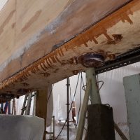 Oak shoe at aft end of keel to protect lower rudder bearing