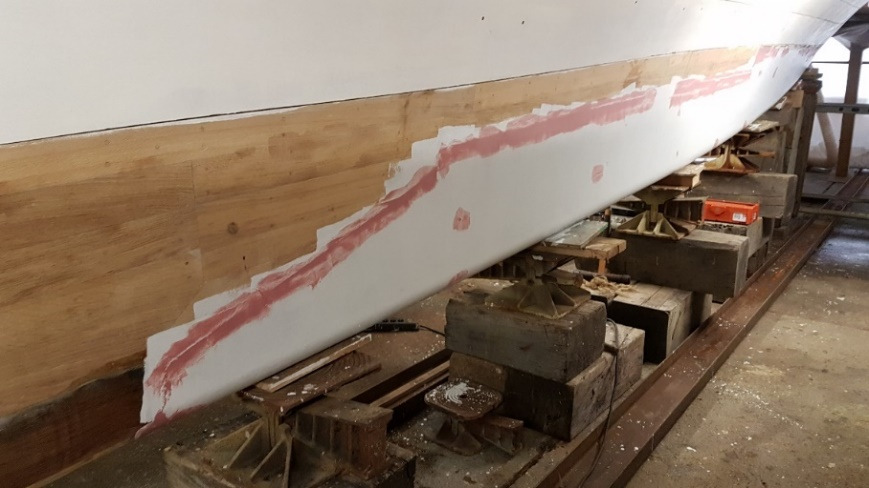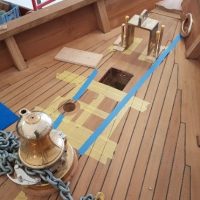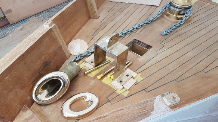 Marking the postion for the chain blocker and the naval pipe (to chain locker)
