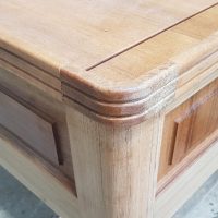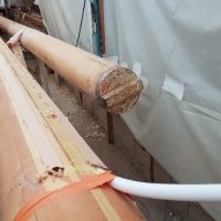 Fitting of bronze copes at the corners of the samson post to prevent rope chafe