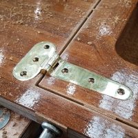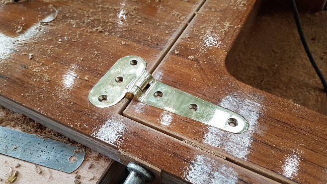 Companion way step hinge being fitted
