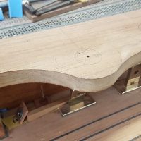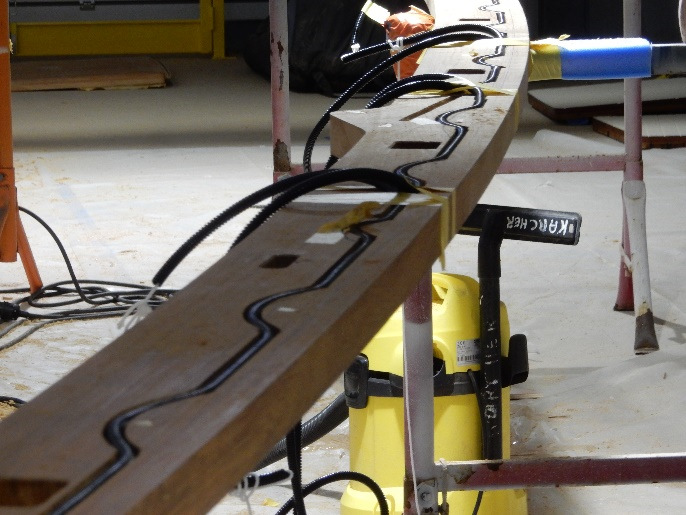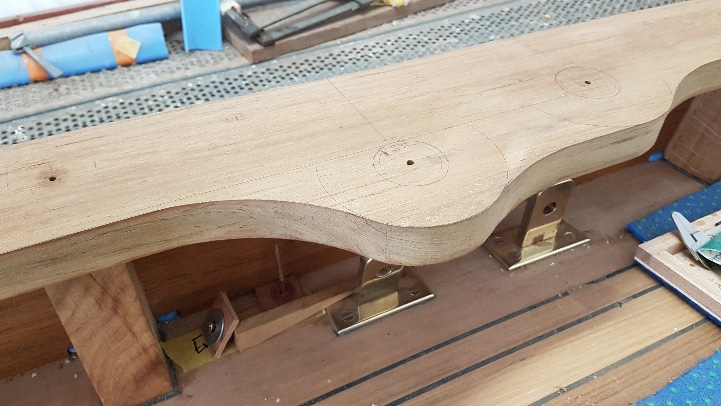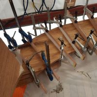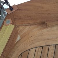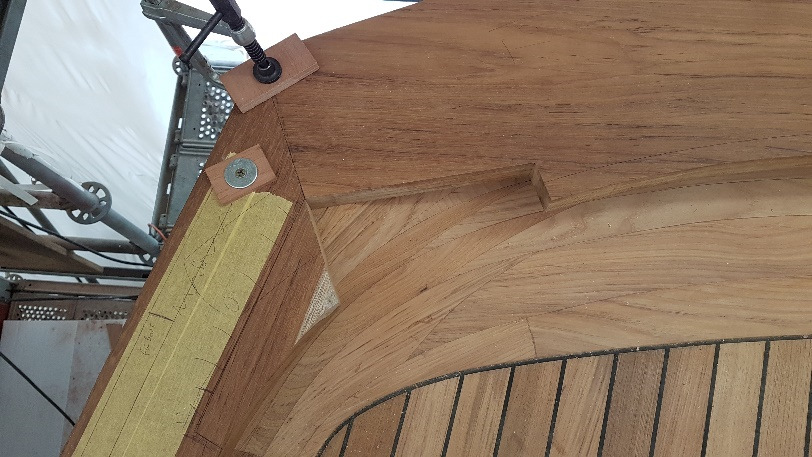 Fitting the teak knee between capping rails at the stern