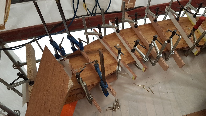 Laminating the capping rail across the stern