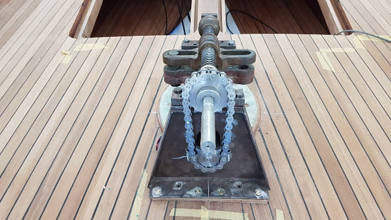Steering system in place with auto pilot motor and chain