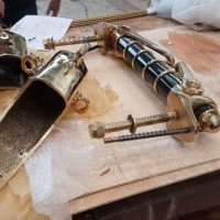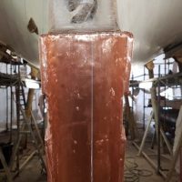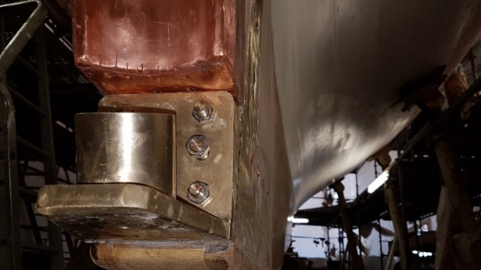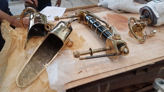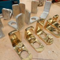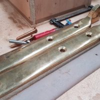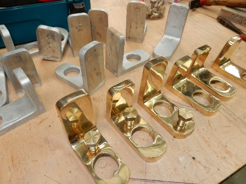 Bowsprit shroud hull fittings following drilling with casting pattern in foreground