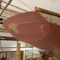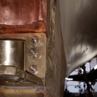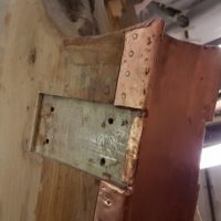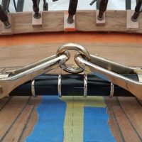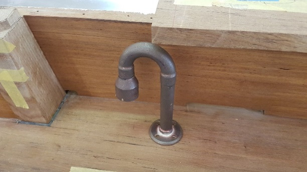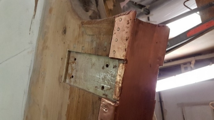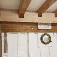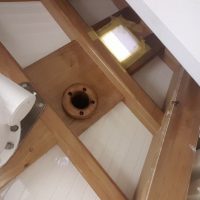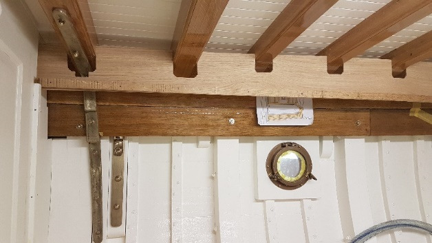 Oak bolster under the naval pipe for guiding the anchor chain into the chain locker