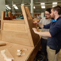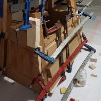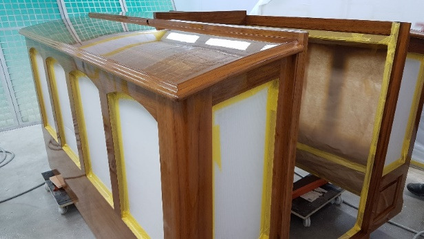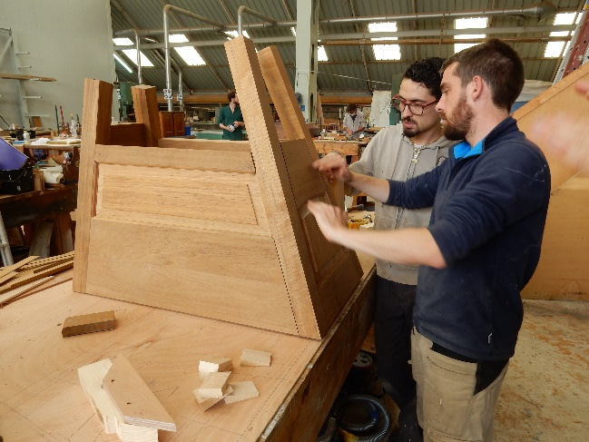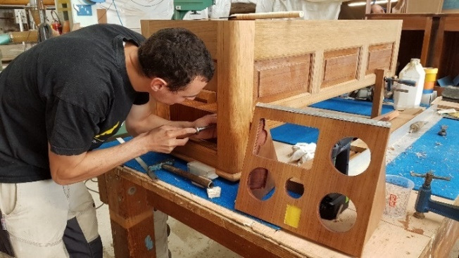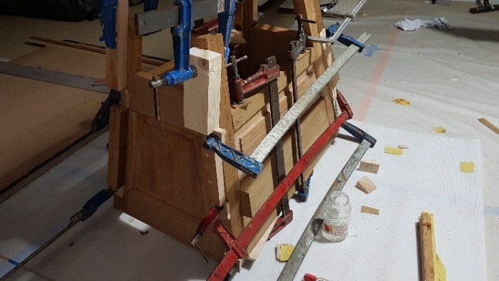 Fitting the movable panels into the aft faces of the cockpit deck benches