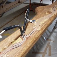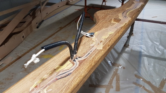 Conduits and cabling epoxied into the underside of the capping rail for the LED lighting