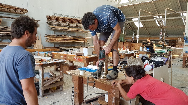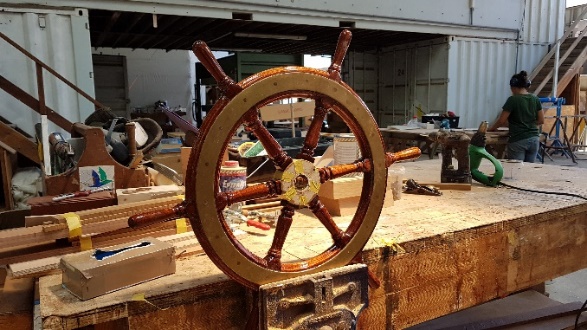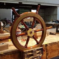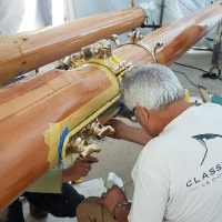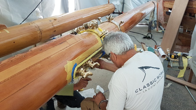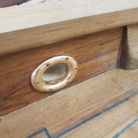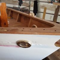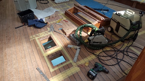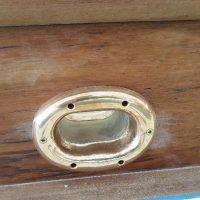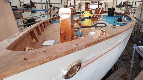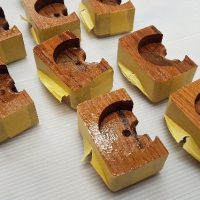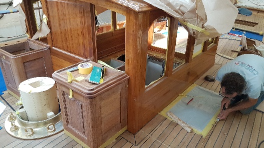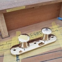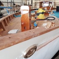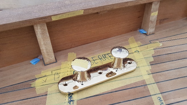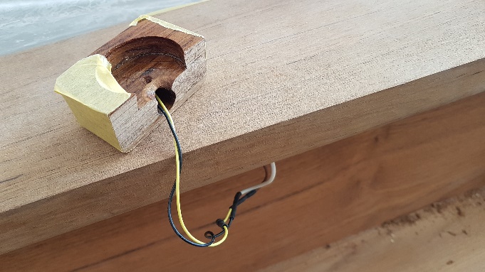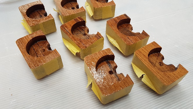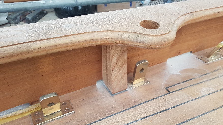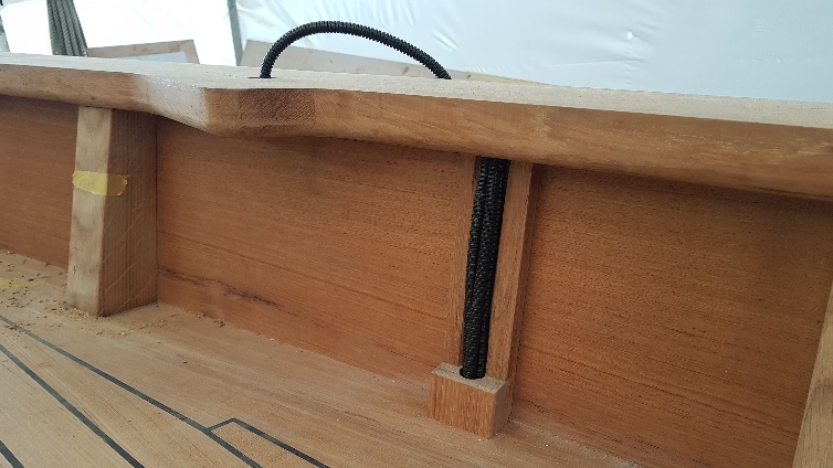 Teak support blocks to take the bulwark lighting LED’s being varnished
