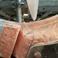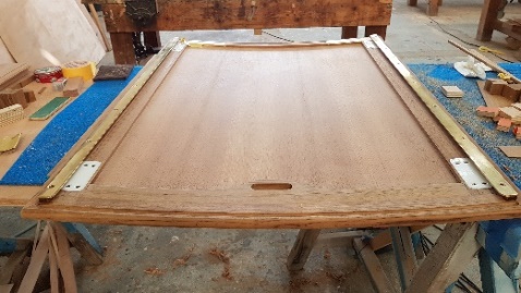 Inner edge of the capping rail being radiused off prior to final shaping and sanding