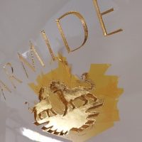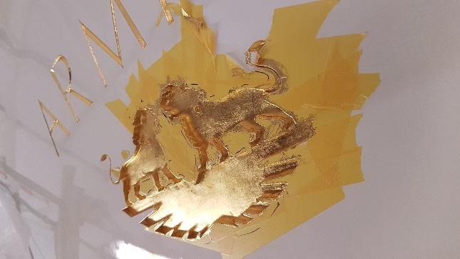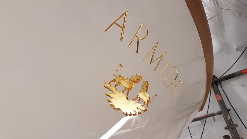 Gold leaf works completed on the transom