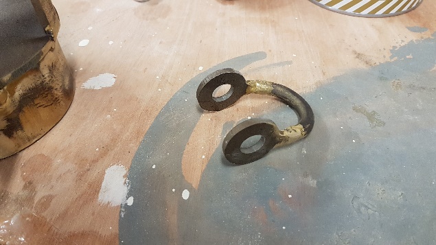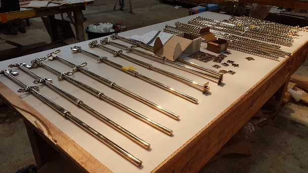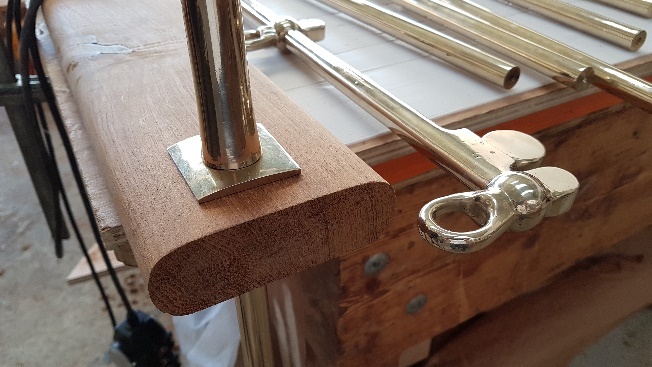 Bronze stanchions being checked prior to fitting