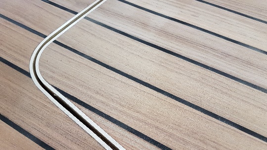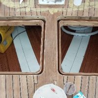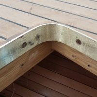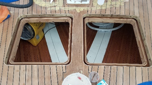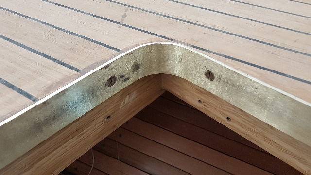 Bronze edging at aft deck hatches