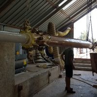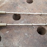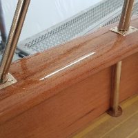 Bronze stanchion and support leg installed with inserts in the capping rail