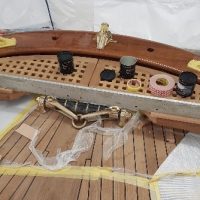 Detail at stanchion head prior to installing 7mm bronze rod lifelines