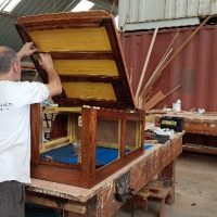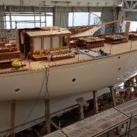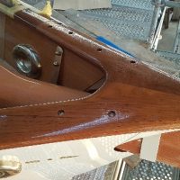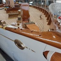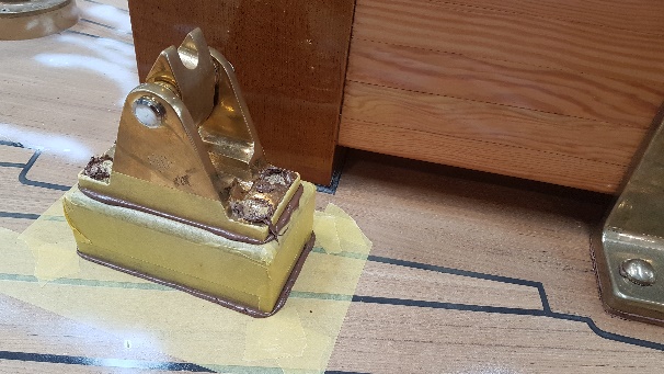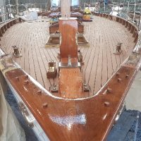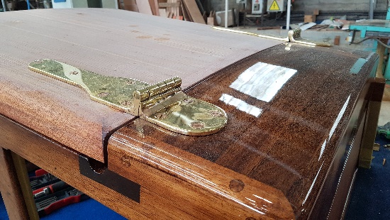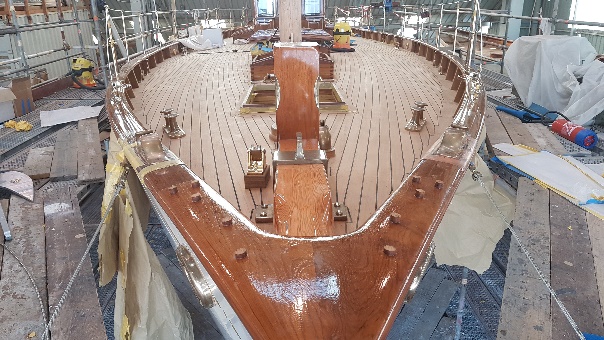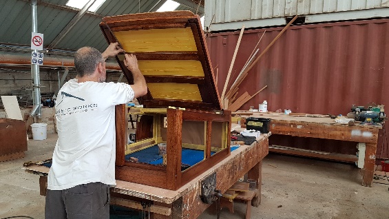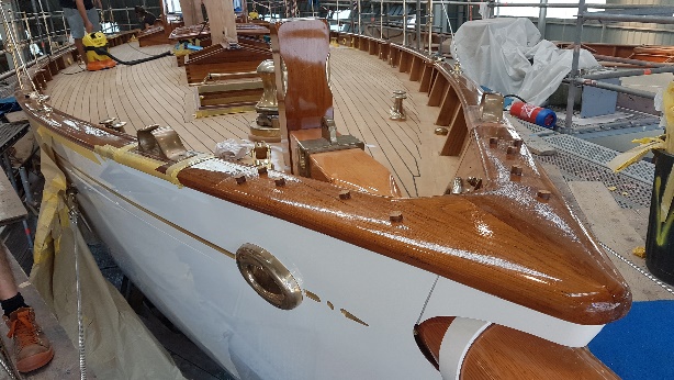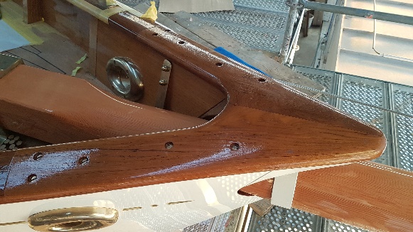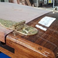 Finishing details on the restored forehatch with original, restored hinges